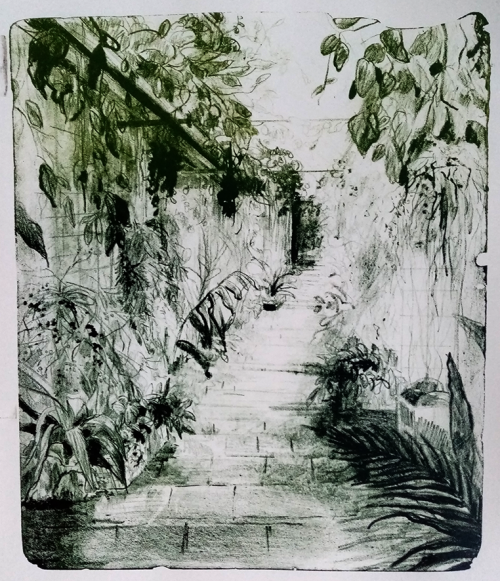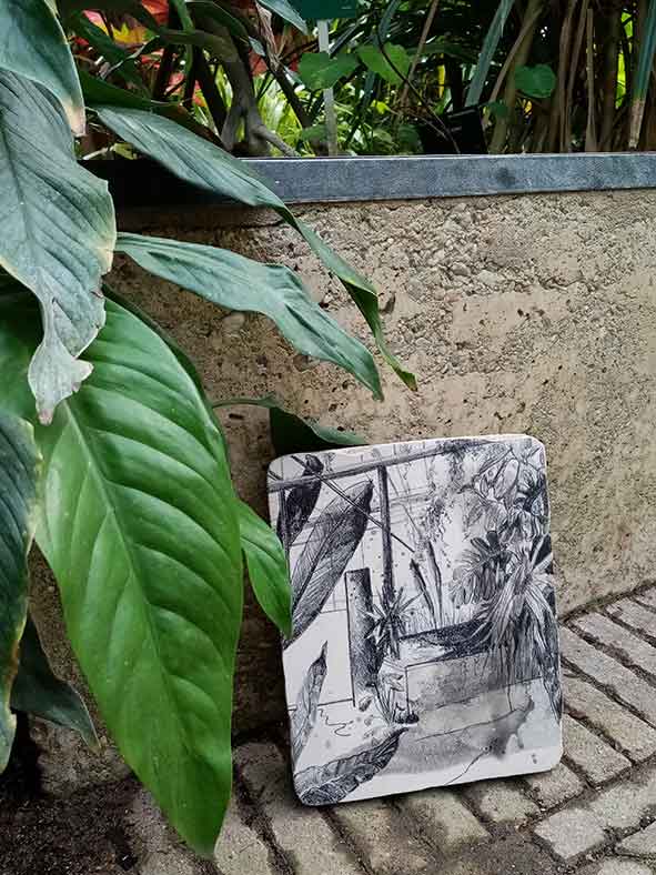 In 2024 I worked in the Botanical Gardens of Utrecht. I brought lithostones with to draw on location, with the intention to print them later.